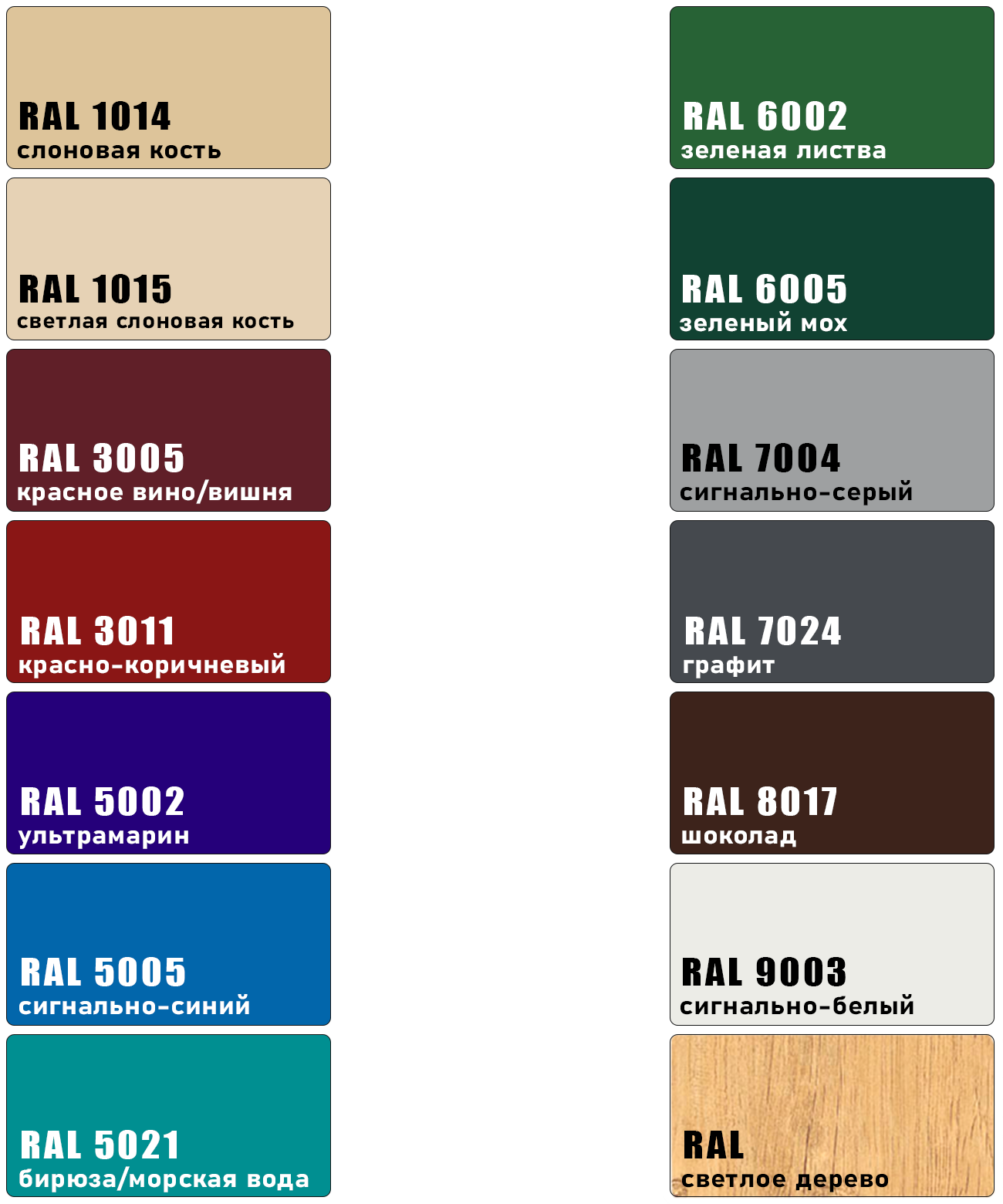5002 — ультрамарин 8017 — шоколад